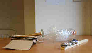 Neben diesen für die Produktion vorgesehenen Perkussionsinstrumenten sind in der Aufnahme außerdem eine leere, metallische Trinkwasserflasche (Ab 00:50 Minuten) und ein mit Folie bespannter Tennisschläger (Ab 00:58 Minuten) zu hören, die beide mit einem Schlägel aus altem Weinkorken angeschlagen werden. Sie komplementieren den Grundrhythmus durch passende rhythmische Akzente und erweitern zusätzlich das Klangspektrum.